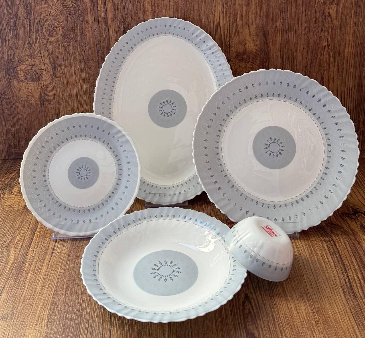 این سرویس ۲۵ پارچه شامل بشقابهای غذاخوری، پیشدستی، کاسههای مناسب سوپ و سالاد و اقلام پرکاربرد دیگر است. یعنی هم برای وعدههای روزانه مناسب است و هم برای پذیرایی از مهمان ظاهر شیک و آراستهای دارد.
