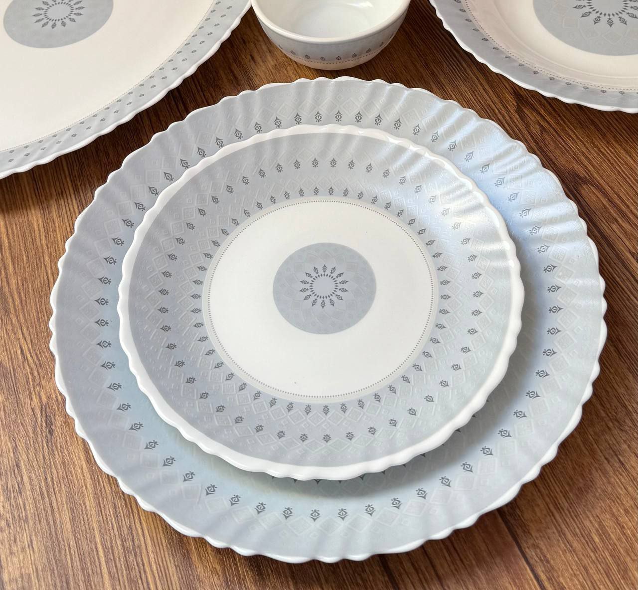 رنگ خاکستری همیشه جزء رنگهای پرفروش در ظروف آرکوپال است؛ چون هم با سرویسهای رنگی ست میشود و هم روی میزهای چوبی، سفید یا سنگی جلوه بسیار زیبایی ایجاد میکند. طرح جتون مخصوص کسانی است که به دنبال یک سرویس ساده، شکیل و بدون شلوغی بصری هستند.