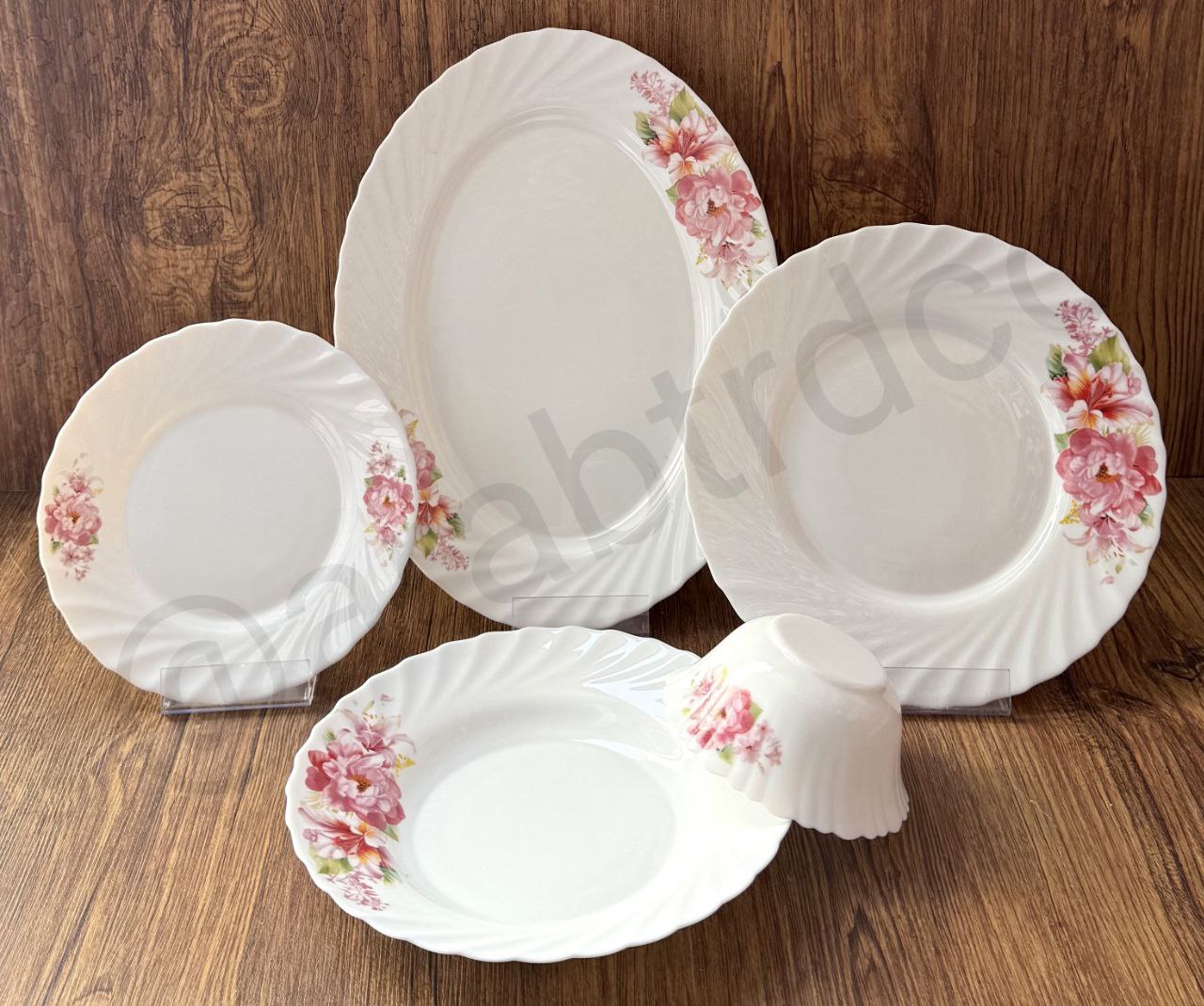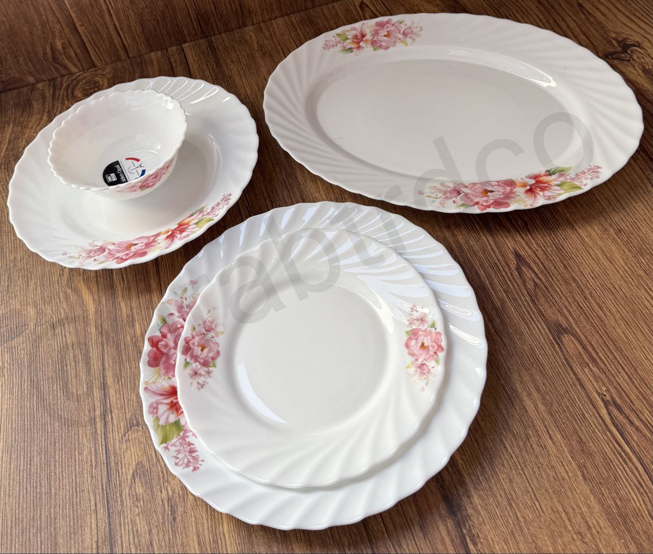 سرویس ۲۵ پارچه آرکوپال طرح هلن صورتی یکی از زیباترین و پرفروشترین طرحهای آرکوپال است که با گلهای ظریف و رنگ صورتی ملایم، حس لطافت و آرامش را به میز غذا منتقل میکند. طراحی این سرویس، کلاسیک اما بسیار دلنشین است و بهخوبی با انواع سبکهای دکوراسیون آشپزخانه هماهنگ میشود.