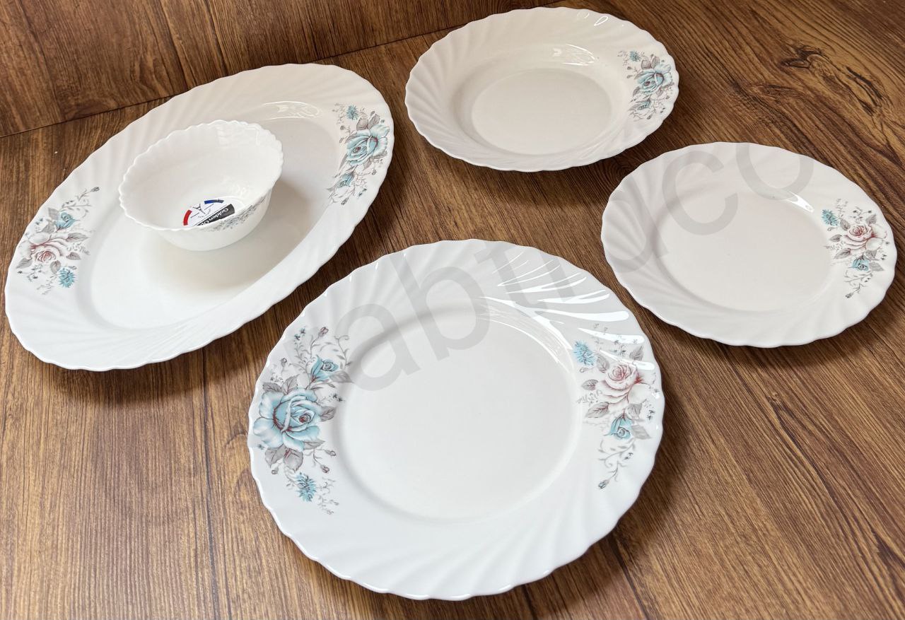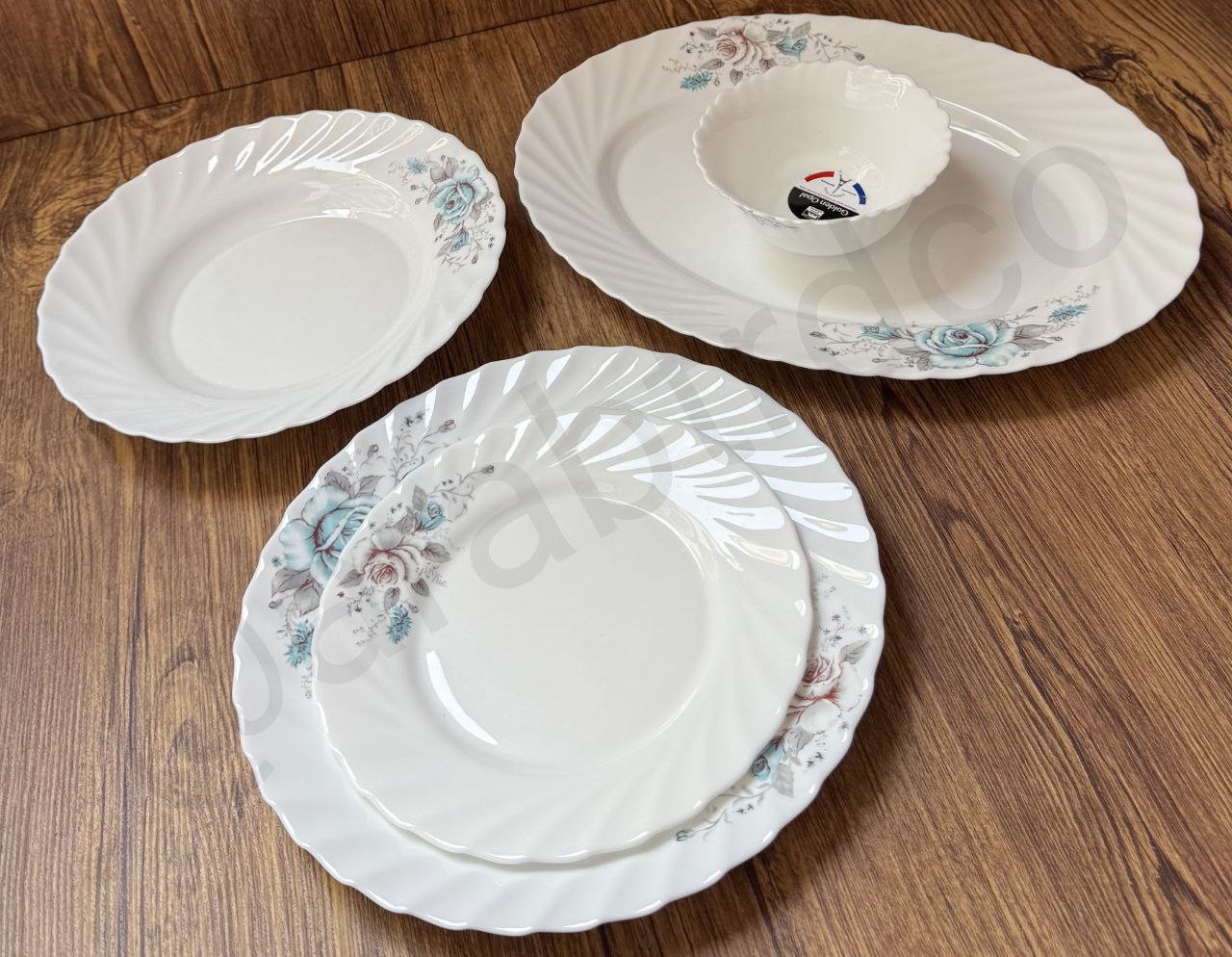این سرویس ۲۵ پارچه، مجموعهای کامل برای استفاده ۶ نفره بوده و تمام اقلام ضروری برای سرو غذا را شامل میشود. اگر بهدنبال یک سرویس آرکوپال شیک، بادوام و با طراحی خاص و چشمگیر هستید، طرح گلوریا سبز میتواند یکی از انتخابهای بسیار مناسب برای آشپزخانه شما باشد