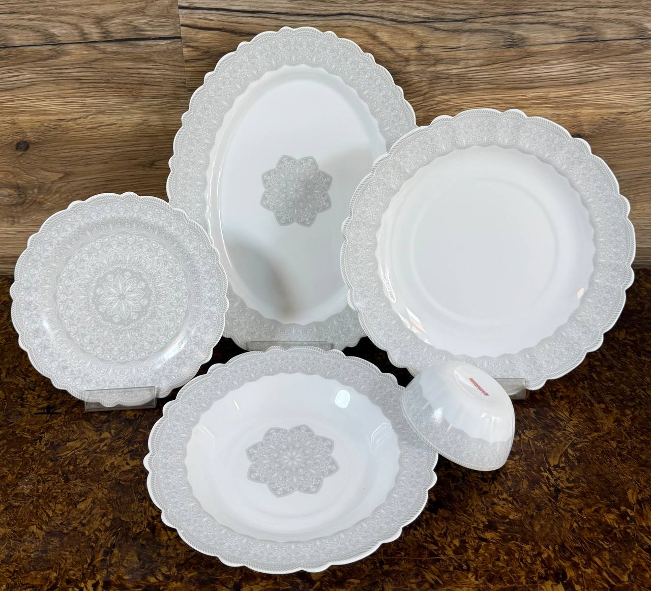 6 پلوخوری، 6 خورشت خوری، 6 پیش دستی، 6 کاسه ماست، 1 دیس گرد