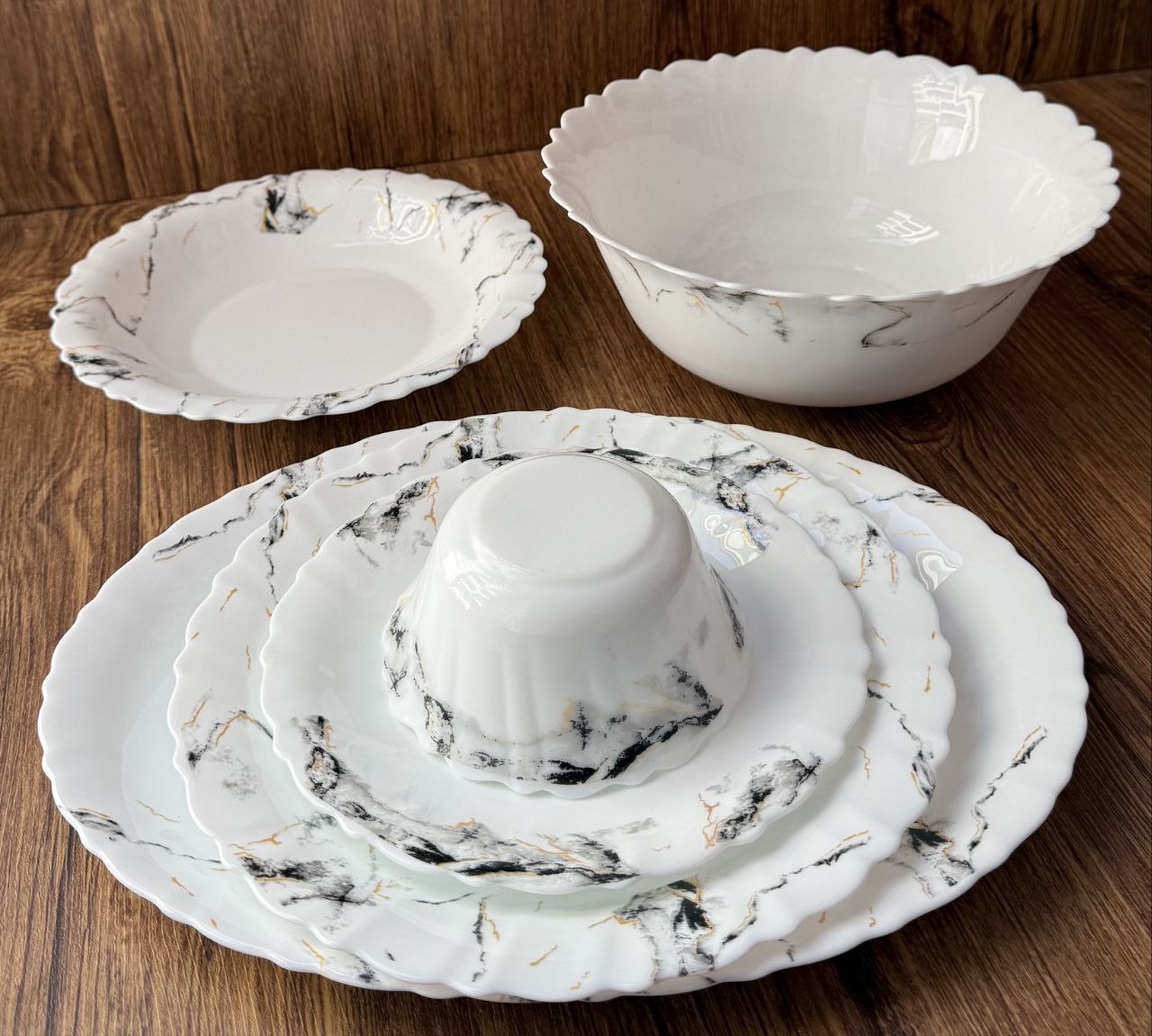 با سرویس 26 پارچه آرکوپال ماربل مشکی، هر میز غذایی را به یک اثر هنری تبدیل کنید! طراحی شیک و مدرن این سرویس، جذابیتی بینظیر به مهمانیها و دورهمیهای شما میبخشد. مقاومت بالا و وزن سبک، استفاده روزانه را لذتبخش میکند. هماکنون خرید کنید و به آشپزخانه خود جلوهای خاص دهید!